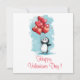 Söt penguin i kärlek för valentindagen med hjärtformade ballonger