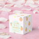 Hon är en söt persika! Första födelsedag med persikor, vita blommor och ljust grönt gingham