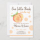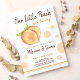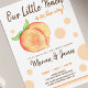 Fira din par babydusch med vår vattenfärgssöt som en inbjudan till persikopartiet. Utformningen har en bild med vattenfärgspersika i hand plockade på en redigerbar bakgrund för persikopersikor färg. Den här söta inbjudan till en liten babydusch är perfekt för din lilla babydusch party, en peachisk söt babydusch eller söt som en persiko första födelsedagsfest