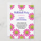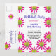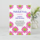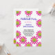Vit med rosa blommor Glad födelsedag-inbjudan för Pickleball-spelare med anpassningsbar text (fram- och baksida). RSVP-kort på baksidan