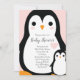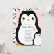Fira de nya föräldrarna och bebisen med denna söta pingisdesign för babyfest! Den mjuka rosa bakgrunden och den söta tecknade pingisfågeln gör det till en perfekt design för en babyflicka på väg, speciellt för en vintertid babyfest!