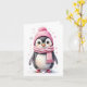 Söt pingvin i rosa mössa och halsduk Blank julkort Kort