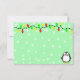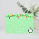 En söt svart-vit pingvinteckning. Tomma anteckningskort för djurungar. Grön version med jul- och snötema. Gåva idé för barn.