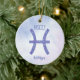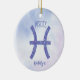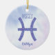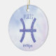 Denna söt lila och lavender Pisces-prydnadsföremål har ditt astrologiska tecken från Zodiac i en vacker gnistra som konstellationerna. Anpassa den här söta presenten med ditt namn i kursivt skript för någon med en födelsedag i slutet av februari eller i tidigt mars.