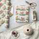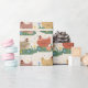Ett lekfullt pixelkonst mönster med stiliserade kycklingar som står på små gräsbevuxna fläckar med små dekorativa element utspridda runtom