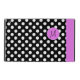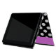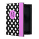 Snyggt iPad-folion stil fodral med byggt stativ som görs i en svart-vit polka-punkt. Ett starkt band för rosa, som löper nedåt på högernas front kant och en skarp skiva för rosa, på mitten:s framsida, har ett svart redo på ett enda brev för att anpassa sig. Gör en underbar personlig-presentidé.