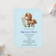 En födelseinvitation med en bedårande illustration. En liten brun ponny som glatt äter tusenskönor.