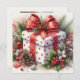 Fånga julstämningen med detta unika, fyrkantiga julkort med en söt, vit och röd, prickig, låda inslagen med en kokett, röd och vit prickig båge, omgiven av järnek och en tallkotte. Mallar medföljer med bild på baksidan.