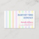 En fin matris av lodrät pastel rand med ett genomskinligt lagrar nära högernas vägg. Här ljuger du din blå slogan "babysittningstjänst" som du kan byta till kostym för dina tjänstebehov. När detta har kommit kommer dina prestigefyllda namn och kontaktuppgifter ljust rosa.