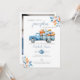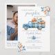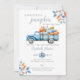 Denna stilrena baby shower-inbjudan har en rustik höstkänsla med höstlöv och en söt blå lastbil full av pumpor. Baksidan visar ditt speciella foto och en QR-kod till presentlistan. Designad av Thisisnotme©