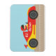 Älskar din son racing, motorsportevenemang eller leksaksracingbilar? Denna färgglada och söta design av en sportbil med en liten racer inne i de attraktiva färgerna rött och gult. Personifiera med barnets namn i tillgängligt utrymme.