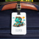 Personlig söt Dino Racer väska tag! Se på när en söt dinosaurie tar ratten i en tävlingsbil, vilket ger spänning och kul. Perfekt för dinosaurieentusiaster och racingfans, denna fantasifulla design lägger till charm och personlighet till var som helst och vem som helst.