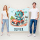 Söt Racerkör Dinosaie i Snabb Bil Fleecefilt