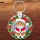 Söt randig katt i tomtekläder nyckelring
