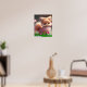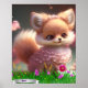 Söt räv i trädgård med rosa blommor Personlig Poster