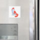 Lekfull, handritad illustration av en söt liten räv på en magnet. Konstverk: Oljepastell på papper. Upphovsrätt Dominic A. White. Med ensamrätt.