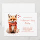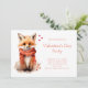 En inbjudan till Alla hjärtans dag-fest med en illustration av en rödaktig orange rävvalp. Ett subtilt leende på hans ansikte. Bär en fin röd halsduk för värmen.