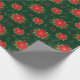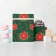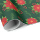 Söt Red Winter Poinsettia på Grönt Mönster Presentpapper