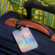 Söt regnbåge med blank multifärgad med pastellteal, lila, rosa och persikor med namn för att anpassa sig.