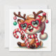 Sprid julvärme med detta platta kort med en söt ren som bär en randig scarf och håller en godisstav. En förtjusande design perfekt för att sprida säsongens glädje. Personifiera med ditt hjärtliga meddelande.