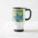 En söt Resemugg utan utsläpp för att anpassa sig, med Art nouveau stil mönster i Lilies-of-the-Valley på blå bakgrund, från Posh & Painterly "For the Kärlek of Lilies"-samlingen.
