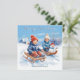 Söt retro-ackvarell med barn på kälke snöscen julkort
