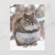 Detta vykort visar en bedårande röd ekorre i den luddiga vita snön. Vad tänker hon på?
