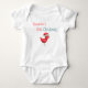 Mycket söt neutral bägarströja för baby:s första jul. Du kan anpassa texten med din egen information. Bilden är en illustration av en röd fågel med röd julhatt. Bra bägarströja för små flickor eller pojkar. Illustrerad och designad av Patricia Alvarez.