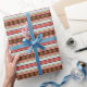 Backa dina gåvor i stil med denna vackra röda, grönt, bruna julklappar som omsluter pappert med färgstarkt rand och snöflingande mönster.