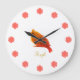Söt röd kunglig fågel och blommor på vit bakgrund väggur. Ett idealiskt väggur för hemmet eller en present till alla!