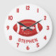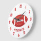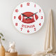 Söt röd pojkars fotboll sovrum vägg stor klocka. Anpassa denna anpassade design med ditt eget namn eller text.