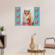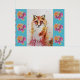 Söt röd räv djur turkos ros blommor affisch