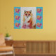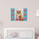 Söt röd räv djur turkos ros blommor affisch, med ett helt anpassningsbart namn. En fantastisk akvarell blomsterdesign. Designad utifrån mina original akvarellmålningar, som jag målade i min egen blomsterträdgård.