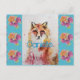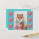 Söt röd räv djur turkos ros rosor vykort, med ett fullt anpassningsbart namn. En strålande akvarell blomsterdesign. Designad från mina ursprungliga akvarellmålningar, som jag målade i min egen blomsterträdgård.