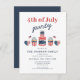 Anpassad söt röd vit och blå 4:e juli-fest inbjudan vykort.