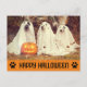 Önska alla en glad Halloween i år med detta söta, roliga vykort med en bild på tre hundar i spökdräkter! Behåll det här roliga fotot eller lägg till ett foto av din egen hund i kostym för att anpassa det här vykortet.