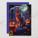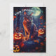 Rolig söt katt halloween pumpa med blå färg på den bakre delen.
