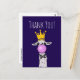 Tack-kort en fantasifull lama som blåser en bubbla medan den tuggar tuggummi. Bär en guldkrona och en svart fluga. Denna söta lama är bara synlig från nacken och uppåt. har en tecknad lång hals.