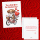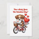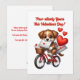 En förtjusande scen med en luddig, gyllenbrun valp som cyklar på en vintagecykel med en liten korg av flätad korg på framsidan. Ovanför står det i lekfulla, fantasifulla bokstäver: “Paw-sitively Yours This Valentine’s Day!” Perfekt för alla som älskar hundar och en rejäl dos gullighet! 🐶❤️
