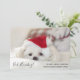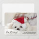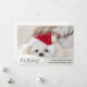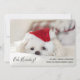 Rolig julkortshälsningmed ett bedårande foto på en söt vit hundvalp som bär en röd julhatt. Den här söta lilla valpen ser sliten ut och uttråkad av all julfirande.