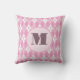 Denna personligt märkta kudde har vit och rosa argyle med en anpassningsbar monogram på en rosa bakgrund. Söt för vardagsrummet, barnkammaren eller ett tonårsflickas sovrum.