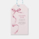 Söt Rosa Båge Band Flicka Babykalas Tack Present Tag. Designen har en söt akvarellbåge, en chic delikat vintage prickig bakgrund och en elegant tackmall som är lätt att anpassa.