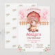Fira hennes speciella dag med denna söta rosa blommiga häst födelsedagsinbjudan, designad för flickor som älskar ponnyer, blommor och allt som är sött och fantasifullt. Denna mjuka akvarelldesign har en charmig ung häst med en delikat blomsterkrans, placerad framför en söt rosa lada och omgiven av ljusgrönska och rosafärgade blommor för en drömlik, sagobokslik känsla.