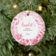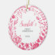 Söt Rosa Blommigt Anpassningsbar Baby Första julkeramiska prydnadsföremål. Anpassa med din anpassningsbar på både framsidan och baksidan.