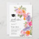 Gratulera till studenten i stil med vår inbjudan till Söt Rosa Lila Blommigt Photo Studenten. Vår och sommarblommor, delikat handmålade, blåser i romantiska nyanser av rosa och lila, och skapar en elegant och tidlös inbjudan. Det moderna penselskriptet tillför en aning sofistikering, medan den vita bakgrunden färg exuerar värme och charm. Med den här inbjudan kan du anpassa alla detaljer till kostym och till stil. Lägg till ditt omhuldade foto på baksidan om du vill ha en personlig beröring som gör din inbjudan verkligt minnesvärd.