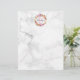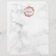 Sallhuvud designat med en blommigt andedräkt av rosa och orange blommor och kvistar, sprit och löv. Den här digitala bilden skapades ursprungligen med vattenfärger och är söt och trendig. Bakgrunden är en bild av elegantens vita marmor. Anpassa med ett första monogram och namn.