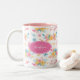Söt Rosa Blommönster Monogramme Två-Tonad Mugg