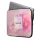 Ett laptop sleeve med ett foto med en bukett av rosa nejlikor. Sätt på en drömmande eterisk bakgrund.