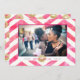 Enkel och söt, denna design har ett varmt rosa vattenfärg-chevronmönster på framsidan och baksidan. Baksidan har även läppavtryck i guld. Framsidan har även ett fotomalområde där du kan placera ditt eget foto tillsammans med svart och varmt rosa typsnitt som kan anpassas till ditt eget meddelande tillsammans med ditt/dina efternamn.