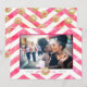 Enkel och söt, denna design har varmröd vattenfärg chevronmönster på framsidan och baksidan. Baksidan har även läppavtryck i guld. Framsidan har även ett fotomallområde där du kan placera ditt eget foto tillsammans med svart och varmröd typografi som kan anpassas till ditt eget meddelande tillsammans med ditt/dina efternamn.